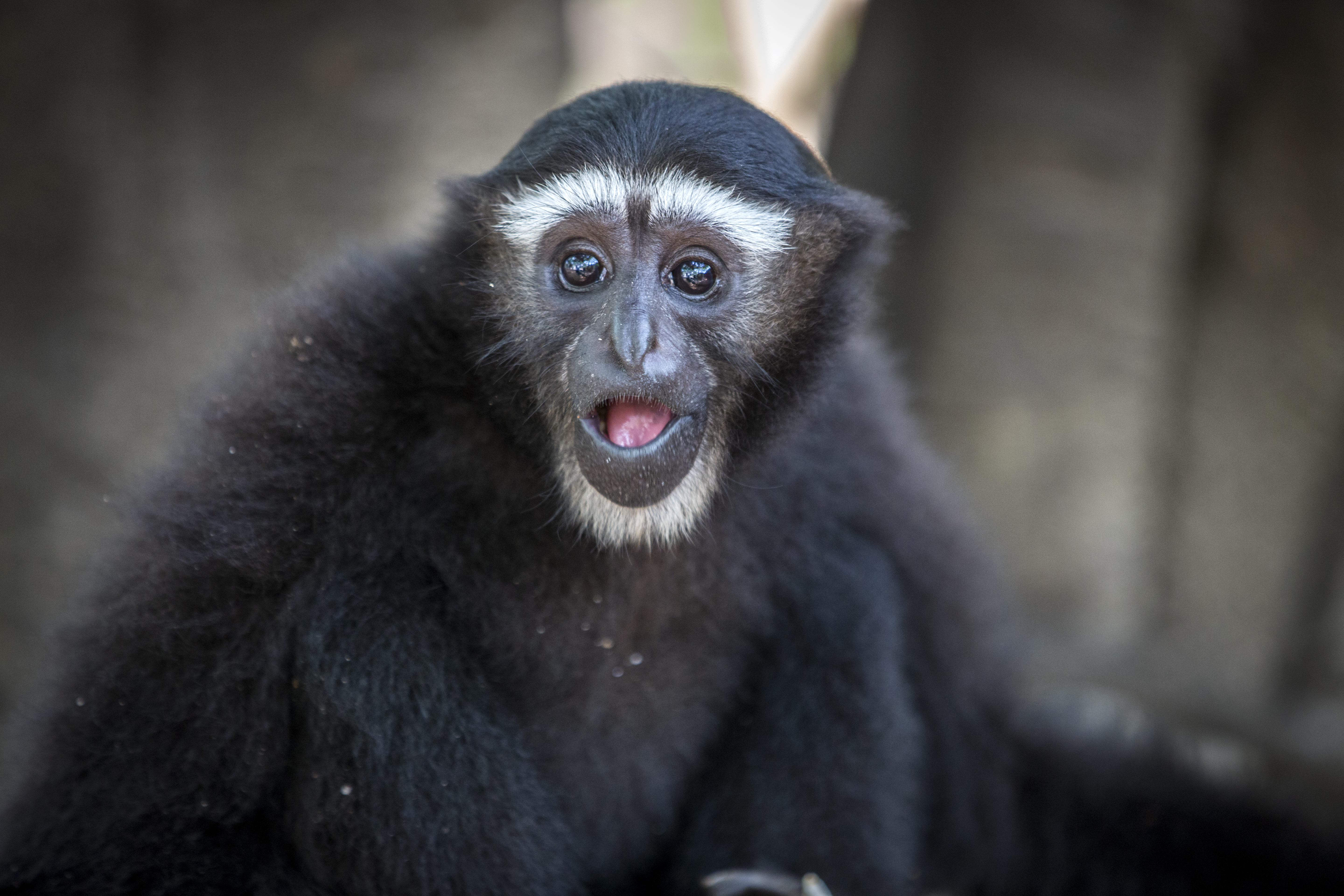 Characteristics - They have long limbs and white eyebrows. Males are black or blackish in color and Females are lighter, ranging from pale and buff to a gray-brown colour. They are tailless.