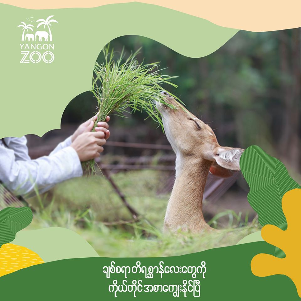 တိရစ္ဆာန် ချစ်သူများအတွက် ရန်ကုန် တိရစ္ဆာန်ဥယျာဉ်ကြီးက တိရစ္ဆာန်လေးတွေကို လာရောက် အစာကျွေးနိုင်ဖို့ စီစဉ်ပေးထားပါတယ်။ ဒီအစီအစဉ်လေးကို လုပ်ဖြစ်တဲ့ ရည်ရွယ်ချက်ကတော့ တိရစ္ဆာန်ချစ်သူတွေနဲ့ တိရစ္ဆာန်လေးတွေတွေ့ဆုံနိုင်ဖို့ စီစဉ်ပေးတာဖြစ်ပါတယ်။ လာရောက် အစာကျွေးသူတွေ အနေနဲ့လည်း ကျန်းမာရေးနှင့် အားကစားဝန်ကြီးဌာန မှထုတ်ပြန်ထားတဲ့ Social Distancing နဲ့ ပတ်သတ်တဲ့ စည်းကမ်းတွေကို လိုက်နာရမှာဖြစ်ပြီး နှာခေါင်းစည်းများကိုလည်း မဖြစ်မနေဝတ်ဆင်ထားရမှာဖြစ်ပါတယ်။ အစာကျွေးမယ့်အစီအစဉ်က တစ်ရက်ကို (၂) ဖွဲ့ခွင့်ပြုပေးထားပြီး နံနက်ပိုင်း (၁) ဖွဲ့၊ နေ့လည်ပိုင်း (၁) ဖွဲ့ ဖြစ်ကာ တစ်ဖွဲ့ကို လူဦးရေ ၅ ယောက် မှ ၇ ယောက် သတ်မှတ်ပေးထားပါတယ်။ နံနက်ပိုင်းကျွေးမယ့်အဖွဲ့က နံနက် ၈:၃၀ မှ ၉:၀၀ အချိန်အတွင်း၊ နေ့လည်ပိုင်းအဖွဲ့က နေ့လည် ၂:၀၀ မှ ၂:၃၀ အချိန်အတွင်း တိရစ္ဆာန်ဥယျာဉ်ကို အရောက်လာပေးဖို့ လိုအပ်ပါတယ်။ အစာကျွေးဖို့ စီစဉ်ရာမှာလည်း အသီးအနှံနဲ့ အရွက်များကို ကိုယ်တိုင် ဝယ်ယူလာနိုင်သလို၊ တိရစ္ဆာန်ဥယျာဉ်မှ စီစဉ်ပေးထားတဲ့ အစီအစဉ်တွေ အတိုင်းလည်း ကျွေးနိုင်ပါတယ်။ တိရစ္ဆာန်လေးတွေရဲ့ ကျန်းမာရေး အတွက် ပြင်ပမှဝယ်ယူလာတဲ့ အစာတွေကို သေချာစွာစစ်ဆေးခြင်းကို နားလည်ပေး ဖို့လည်း ကြိုတင် မေတ္တာရပ်ခံထားပါရစေ။ ဒီအစီအစဉ်လေးနဲ့ ပတ်သတ်လို့ စိတ်ပါဝင်စားသူများ အနေနဲ့ ကြိုတင်စာရင်းပေးဖို့လိုအပ်တဲ့အတွက် ဖုန်းနံပါတ် (09682011170/09448007527) သို့ ခေါ်ဆိုပြီး ကျွေးချင်တဲ့ ရက်၊ ကျွေးချင်တဲ့ အစာနဲ့ အစီအစဉ် အသေးစိတ်ကို ကြိုတင် ဆက်သွယ်စုံစမ်းမေးမြန်းနိုင်ပါတယ်။